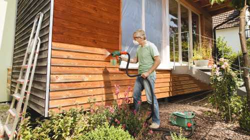 - Позволяет быстро обрабатывать большие площади (200 м² фасада за 2 дня, деревянный дом за 4-5 часов).