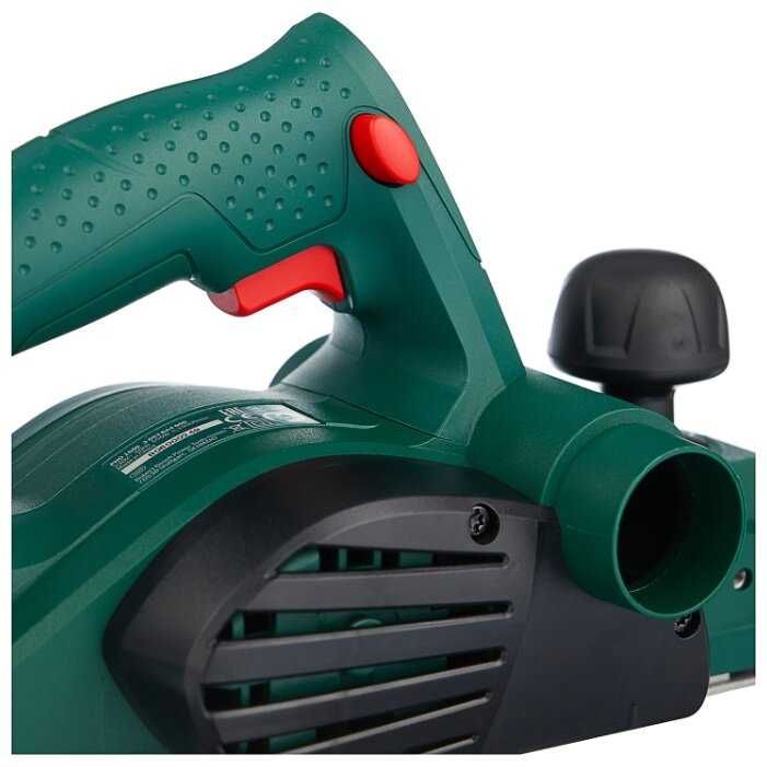 1. кнопка питания имеет большой ход и маленький конечный "промежуток" когда клавиша действительно включает рубанок, часто бывает что рука устаёт держать кнопку и режим работы получается прерывистый. палец устаёт минут за 15-20, хоть хомут затягивай во время работы