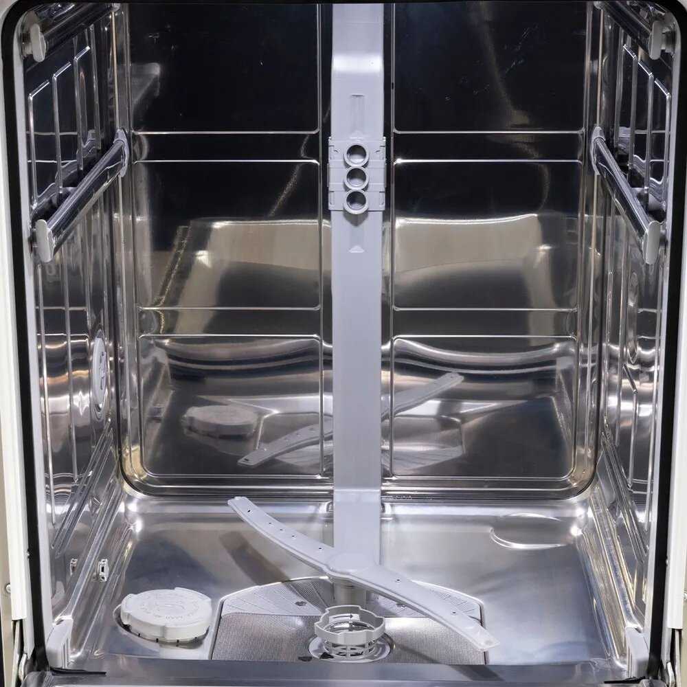 Конструкция включает три уровня загрузки с продуманной системой держателей. Верхняя выдвижная корзина предназначена для столовых приборов, а дополнительная съемная корзинка может размещаться в нижней секции. Пользователи ценят регулируемые полки, позволяющие оптимально размещать посуду разных размеров. Отмечается, что правильное распределение посуды обеспечивает лучший результат мойки. -