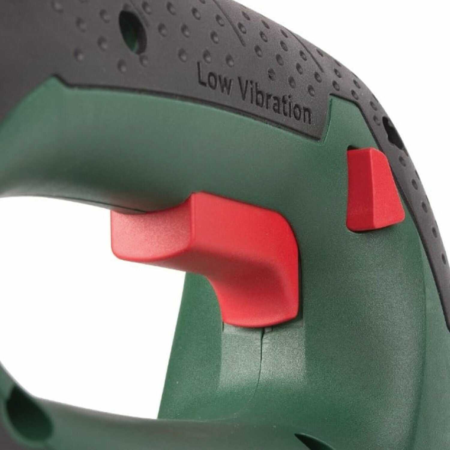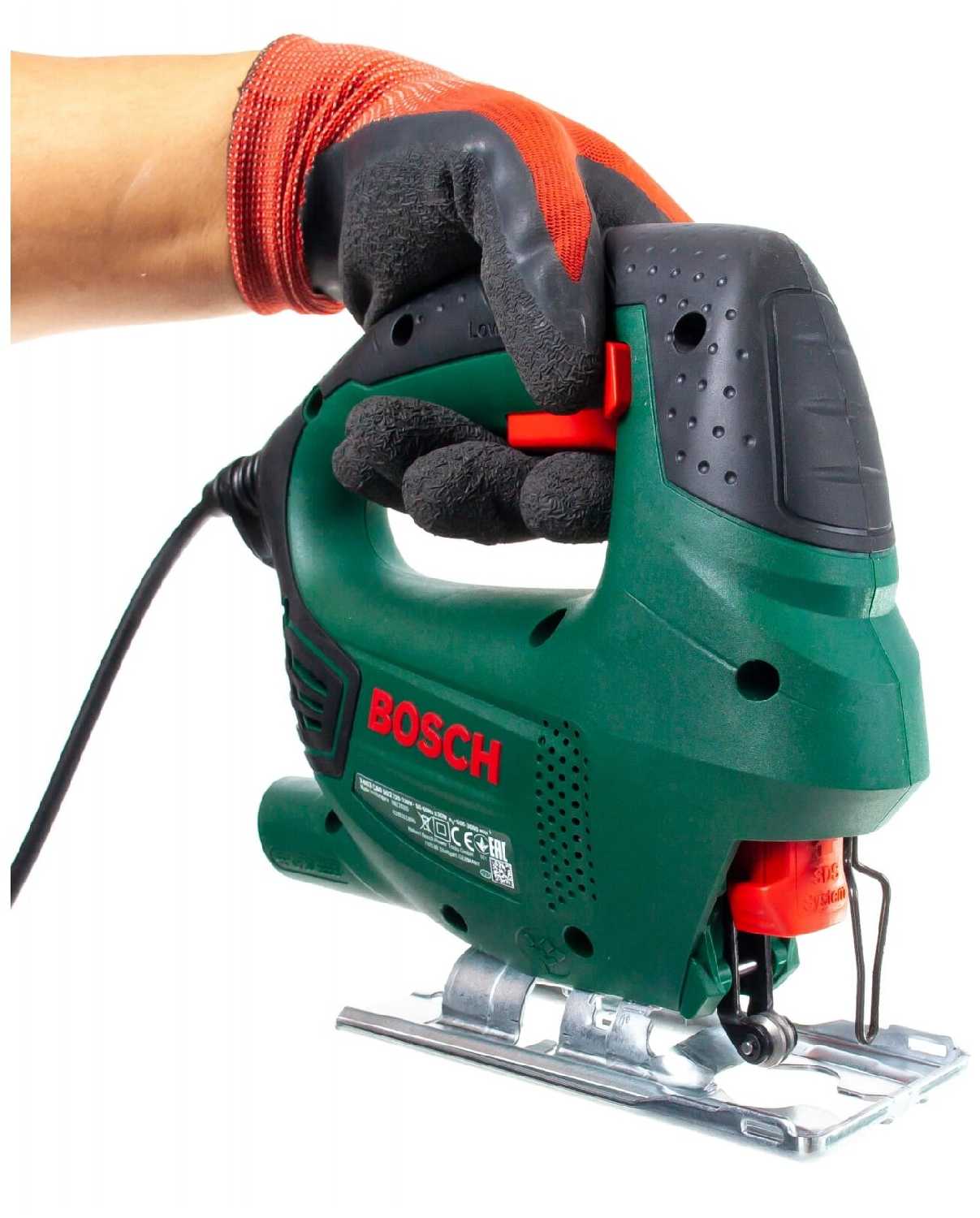 Плавный пуск, регулировка частоты хода нажатием на пусковую кнопку, обдув, наличие маятникового хода (в сравнении с Bosch PST 700 E , хотя оба находятся в одной снеговой категории), лёгкий.