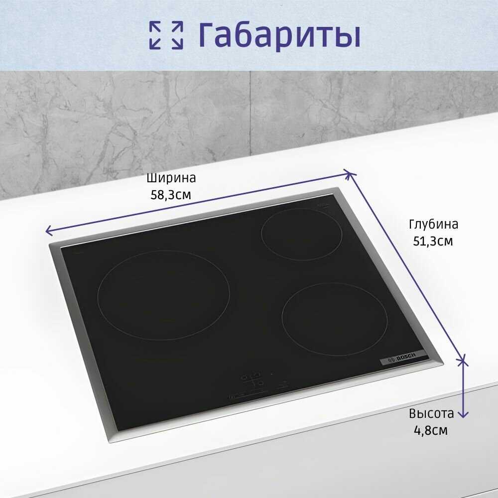 - + Красивая, стильная встраиваемая варочная панель Bosch 8 серии. Хороший дизайн, функционал, зоны расширения, сенсорное управление.