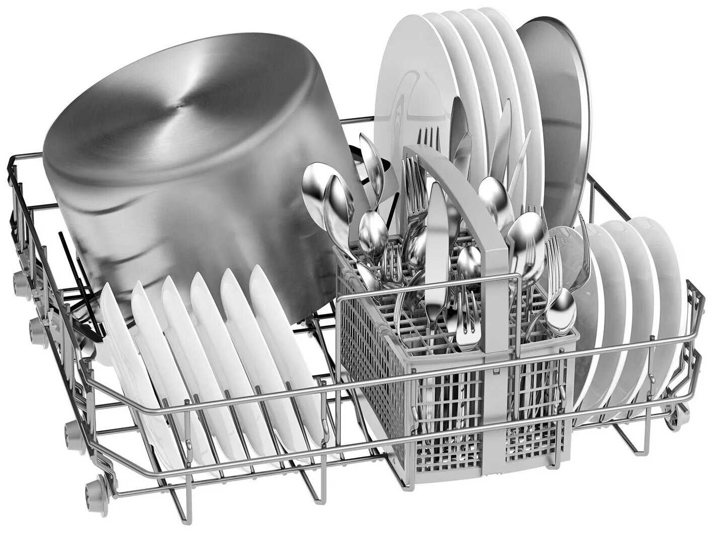 - Программа с температурой 70С - - Нет дополнительных лотков для ножей, которые присутствуют в более дорогих моделях Bosch.