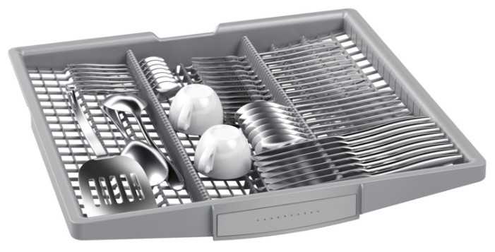 - + Идеально моет посуду! Вместительный отсек для вилок/ложек.