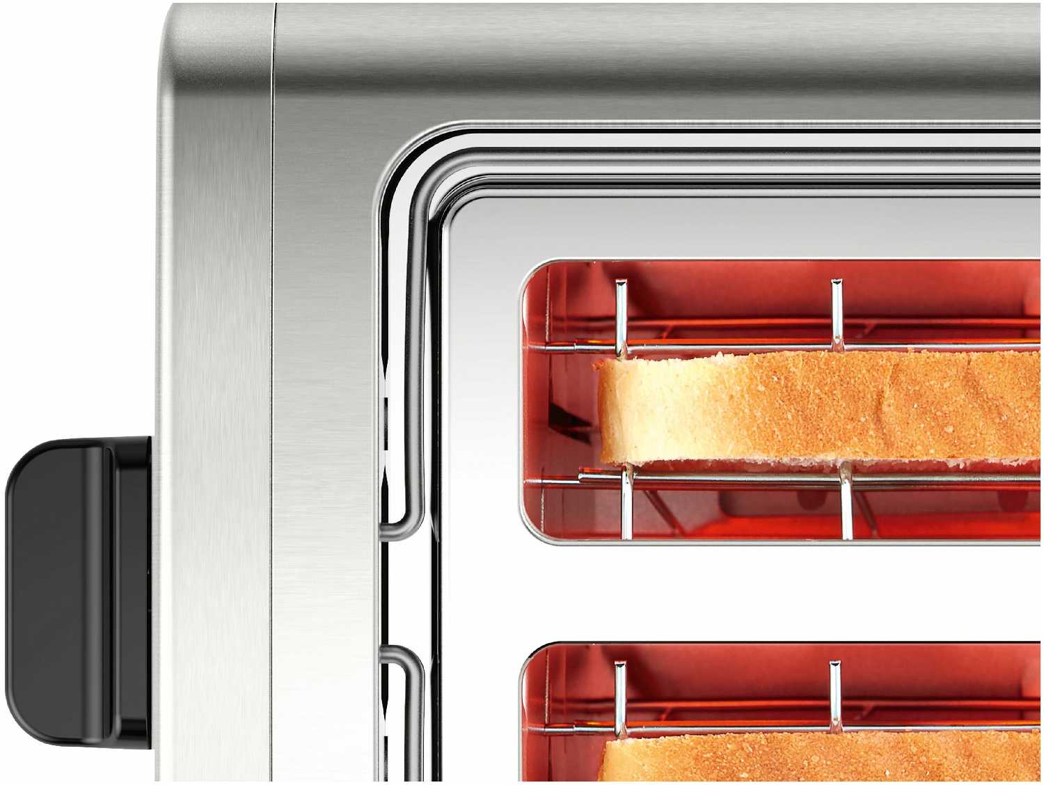 Ступенчатая регулировка степени прожарки, можно идеально откалибровать под любой хлеб. Большое окошко для загрузки, влезает фактически 1,5 дольки тостового хлеба.