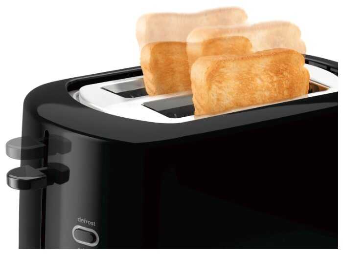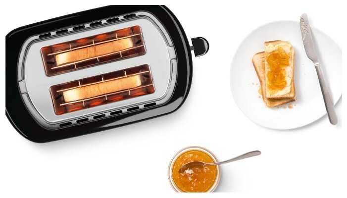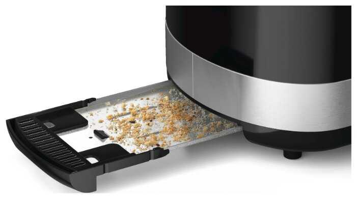 - + Хорошо поджаривает хлеб. Есть лоток для крошек.