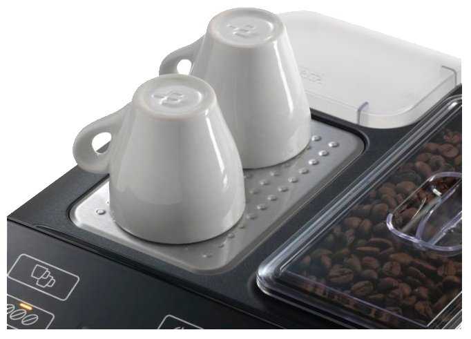 - Платформа для подогрева чашек (до 45°C) поддерживает температуру напитка, что критично для эспрессо и капучино.