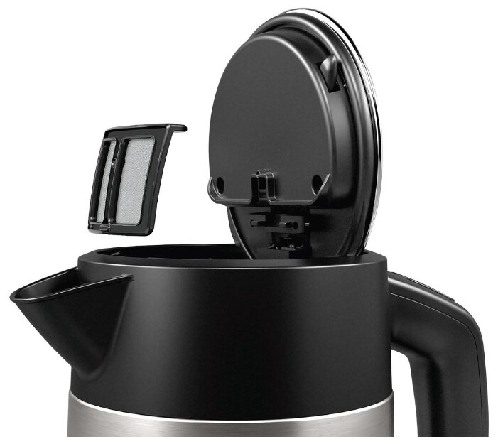 - Сетчатый фильтр на носике предотвращает попадание накипи в напитки.
