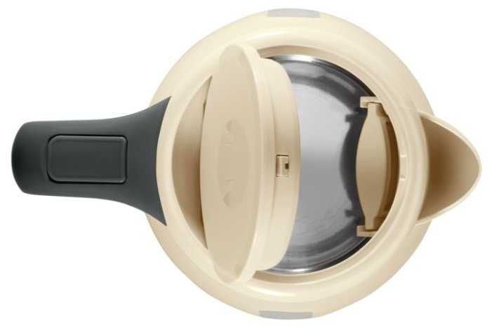 - + Светло-бежевый цвет чайника без черных вставок; не пахнет; возможность смотать шнур; не слишком шумный.
