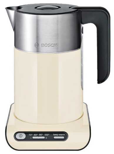 Чайник выбирала очень долгое время, рассматривала все характеристики и преимущества у моделей Bosch. Выбор все таки был сделан и не пожалела ни на секунду. Стильный дизайн, быстрый подогрев воды, удобная крышка , удобно внутри мыть и протирать чайник и еще большой плюс, что есть можно вскипятить чайник на 70- 80 градусов, регулирование температуры.