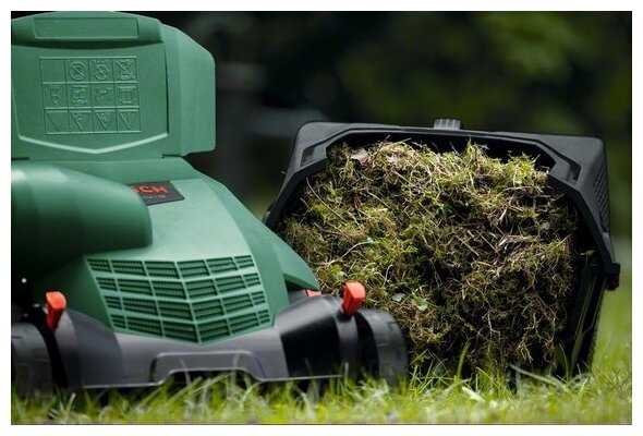 - + 4 сотки газона убрал за 2-3 часа. граблями - 3 раза дольше и тяжелей физически. качество уборки - выше в разы, т. к. затягивает в себя весь листья и траву.... пластиковый контейнер у бош - гораздо удобней тканевого.