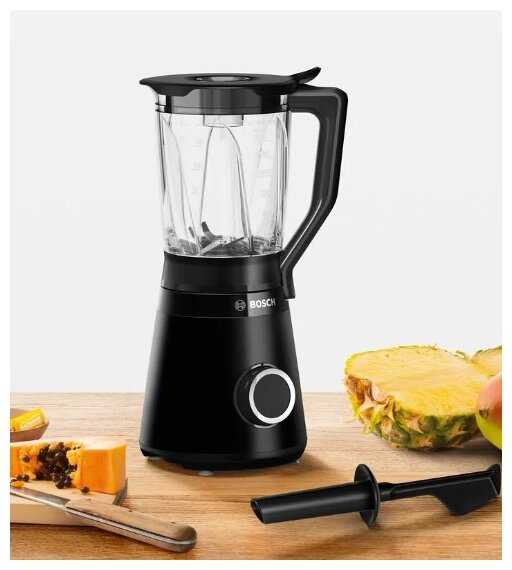 | Дополнительная информация : | Надежный двигатель Bosch: мощность 1200 Вт со скоростью вращения до 30 000 об/мин. Лезвия ProEdge, изготовленные в Золингене, и технология EasyKlick: нежная текстура смузи и простота очистки ножа. Стеклянный кувшин для блендера ThermoSafe с 3D ускорителями потока: термостойкий кувшин, объем 1, 5 л. |