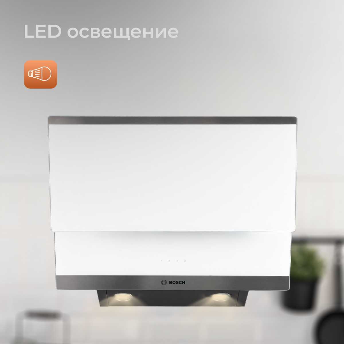 Модель оптимальна для кухонь площадью 12-20 м² с современным интерьером. Благодаря лаконичному дизайну и белому цвету она идеально сочетается с техникой Bosch, минимализмом или неоклассикой. Мощности хватает для квартир-студий, но в помещениях больше 25 м² может потребоваться дополнительная вентиляция. -