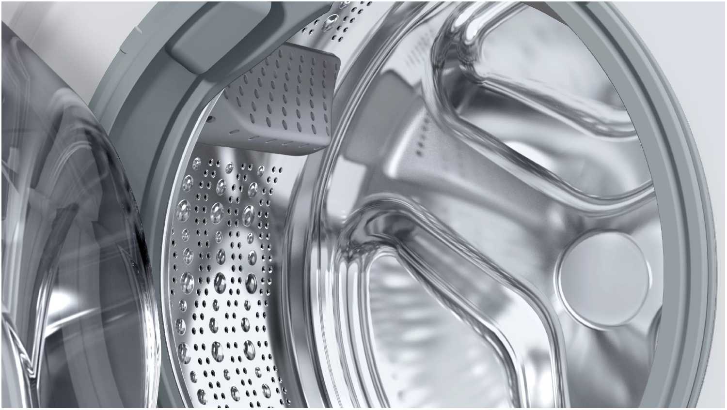Второе - контроль баланса барабана при отжиме помогает в случаях образования комка из вещей, в такой ситуации механизм раскручивает барабан в обратную сторону или снижает скорость, вплоть до выключения. И это работает. Также это поможет продлить срок эксплуатации Bosch WLR245H2OE и снижает уровень вибрации и шума при работе.