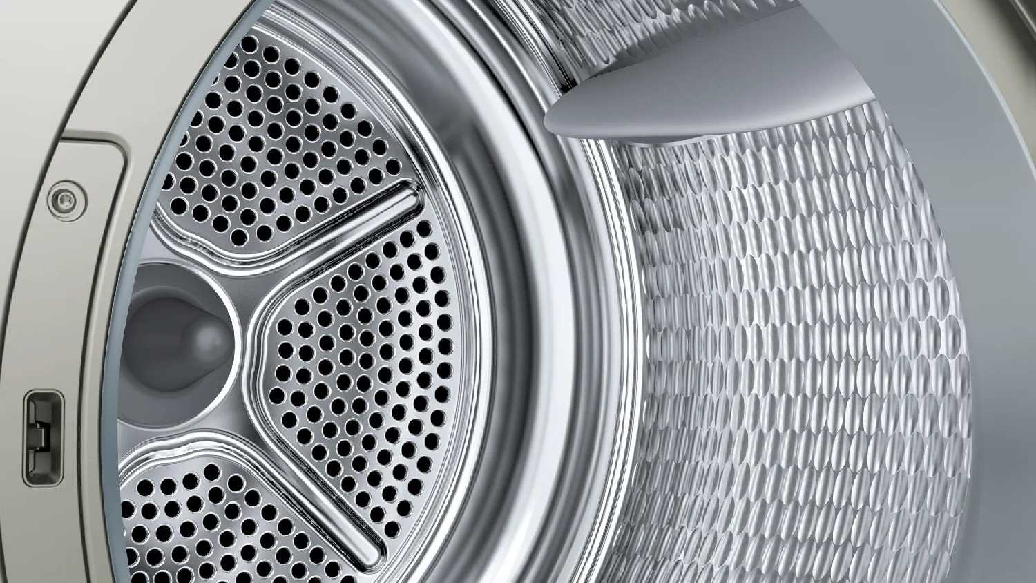 - + Сушильная машина имеет максимальную загрузку до 8 кг, за счет чего можно одновременно обрабатывать несколько комплектов постельного белья или объемный плед. Защита от сминания предотвращает образование заломов на одежде. Это упрощает процесс дальнейшего глаженья.