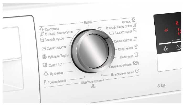 - - Имеет встроенный датчик влажности белья, большинство программ ориентируются на датчик. Датчик расположен рядом с дверцей, поэтому если на него не попадают влажные вещи машина завершает цикл сушки. Поэтому если вещей мало, надо включать сушку по времени и все вопросы решаются.