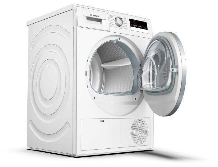 С виду качественная вещь. Отсек на 8 кг, можно засунуть и высушить оооочень много вещей за один раз. Относительно "не шумная". Марка Bosch. Автономна - включил в разетку и пользуйся (некоторые модели идут с шлангами для слива и пр. штуками, но зачем они? слить воду/конденсат из отсека сбора конденсата - очень просто и быстро, зато сушилку можно установить хоть где, а не рядом с канализацией!). Много разных режимов сушки. Время сушки - в среднем 45 минут - вещи сухие.