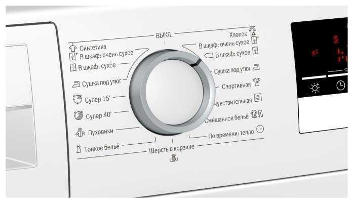- + Фильтр для сбора ворса, контейнер для сбора воды (можно установить в любом месте), сама регулирует время сушки в зависимости от влажности белья, режим против сминания после окончания сушки