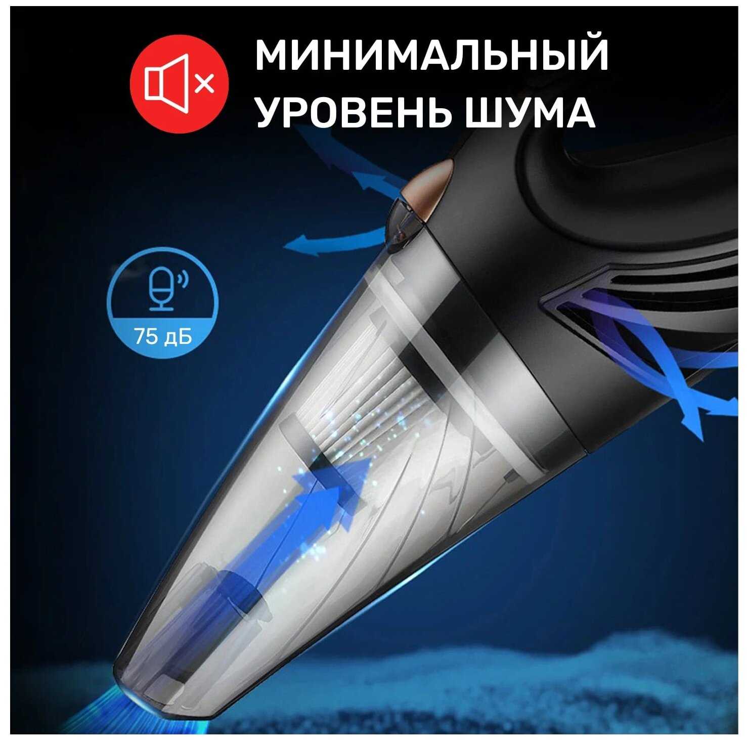 - Гул мотора на 20% тише, чем у стандартных домашних пылесосов, что комфортно для чистки в закрытом салоне.