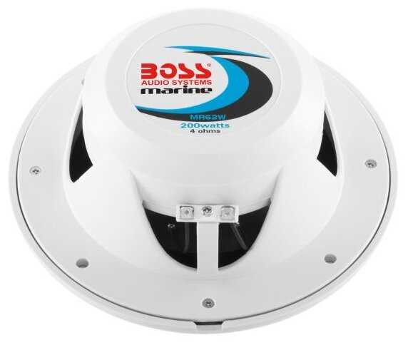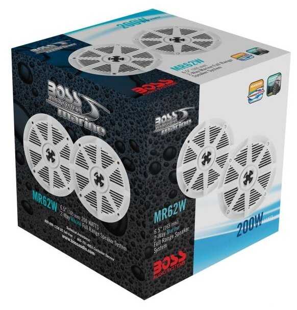 Комплектация : | Динамики Boss Audio Marine MR62W 200 Вт, 5.25'' Белые-2 штуки в оригинальной упаковке Прокладка под динамик 2 штуки Крепёж Инструкция, шаблон для врезки |