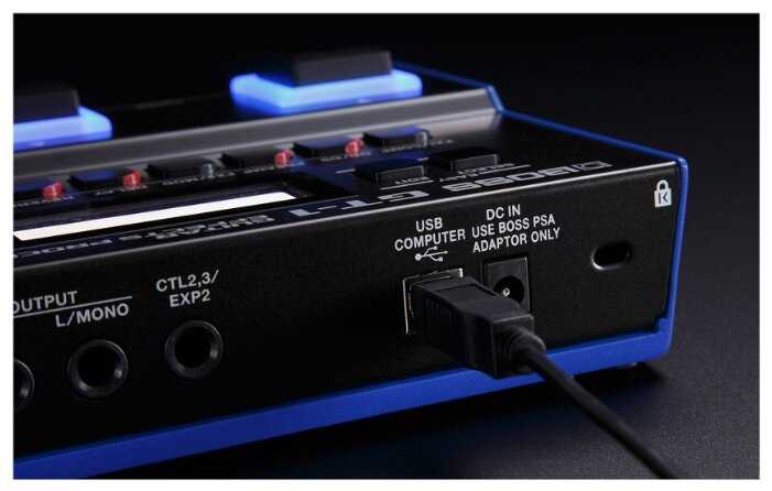- Возможность тонкой настройки эффектов и усилителей через Boss Tone Studio и Tone Central, включая загрузку пользовательских пресетов.