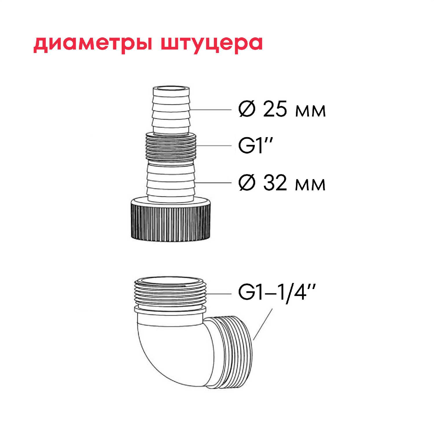 - Переходники на шланги 25-32 мм с фиксацией против протечек.