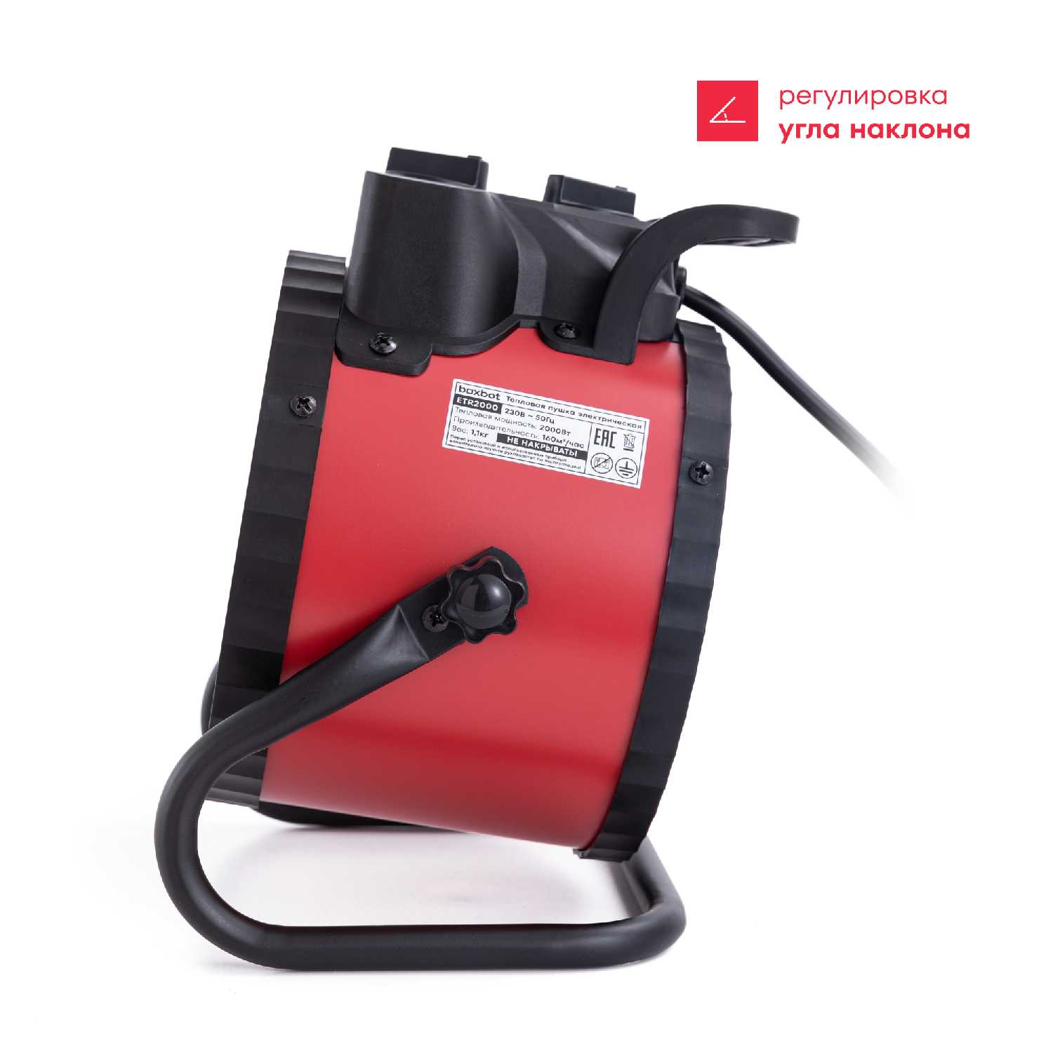 Пушка оснащена механизмом наклона корпуса, который пользователи оценивают как удобный и практичный. Возможность менять угол обдува позволяет направлять тепло точечно — например, на рабочее место в гараже или зону отдыха в палатке. Фиксация угла надёжна, сам механизм выполнен без люфтов. -
