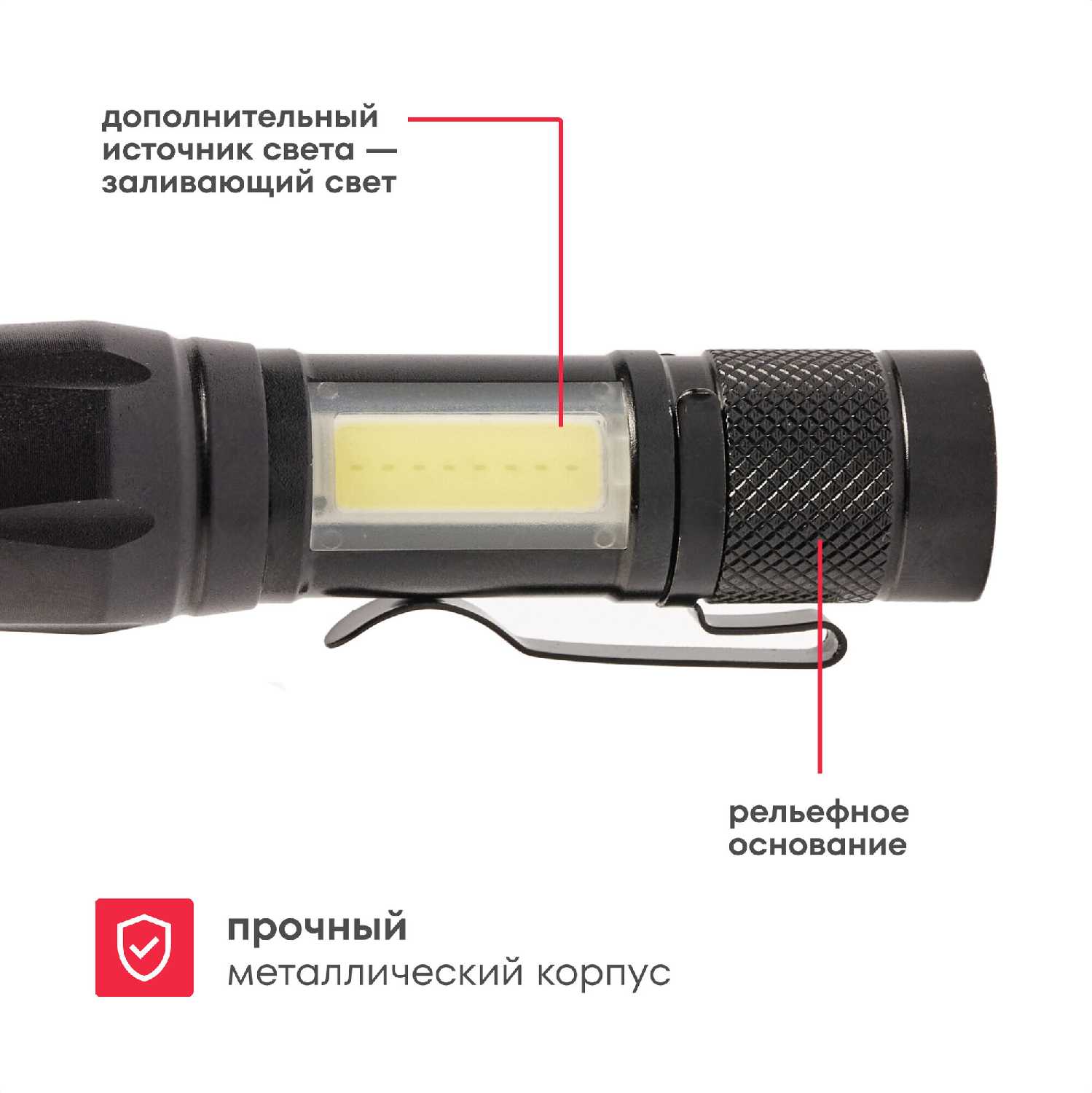 Особенности : | USB-зарядка, кабель USB, регулировка угла свечения, фокусировка с зумом |
