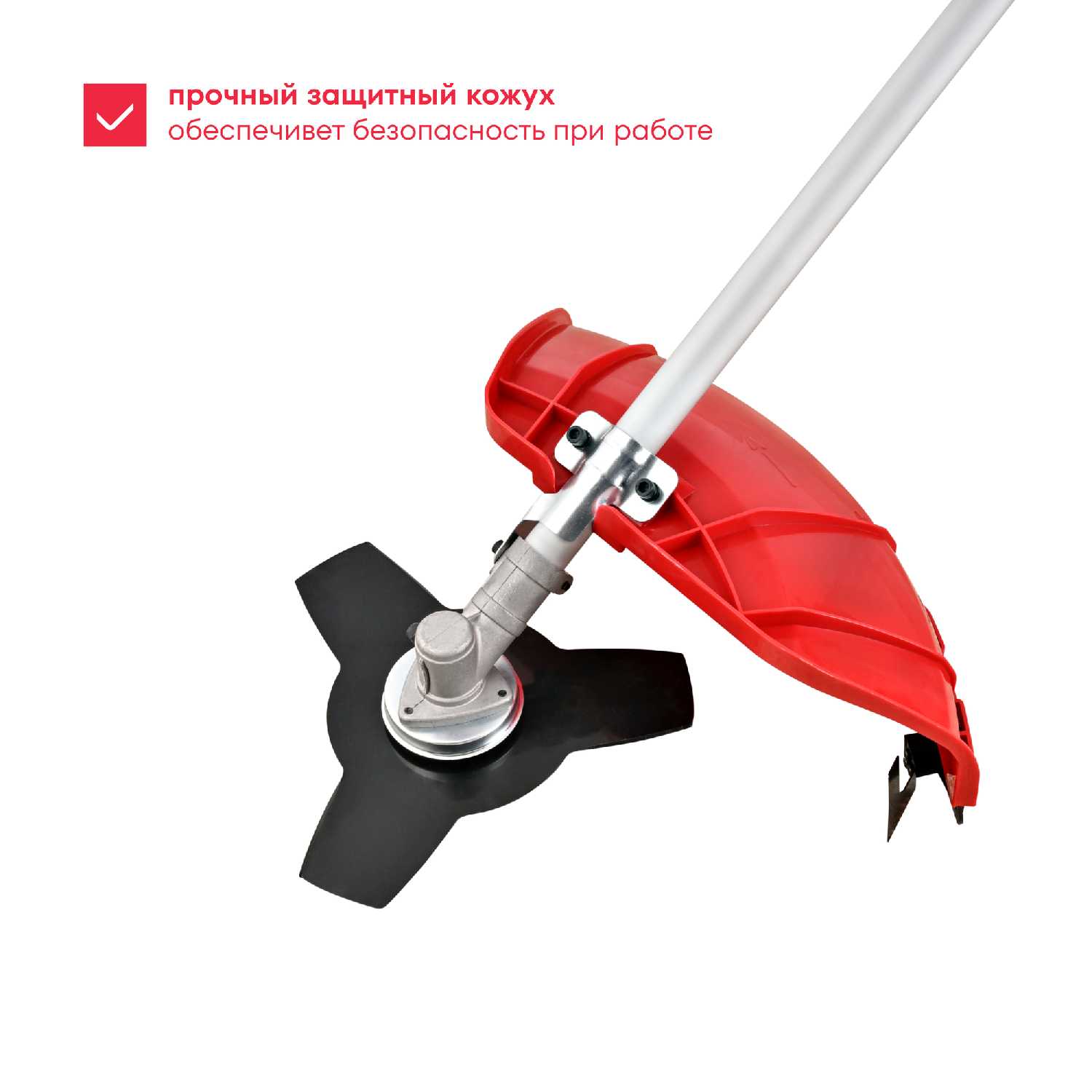 - + отлично косит, без претензий, за свои деньги делает всё, что положено. очень доволен покупкой. очень помогает диск, который идёт в комплекте, с ним можно даже рубить небольшие деревья.