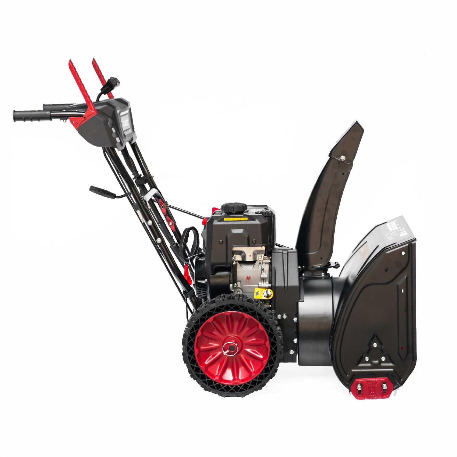 Так как у меня инвалидность, то ручной запуск для меня представлял проблему. А также маленькие пневматические колеса, когда приходится постоянно поддергивать и подталкивать. Сегодня собрал и как раз из-за плюсовой температуры мокрый снег сошел с крыши. Так оставлять нельзя, если эти кучи приморозит, потом совсем не отдолбишь. Открыл кран, закрыл заслонку, обороты поставил на треть, пять раз качнул праймером, ключ на старт, потянул (не дергал) за веревку (хотел масло разогнать), а он завелся. Работает ровно, двигатель защищен. Мокрый снег, сошедший с крыши, а это, на секундочку, куча высотой сантиметров пятьдесят, да еще и спрессовалась, откидывает не задумываясь метров на пять-шесть. А мне больше и не надо. Когда включил обогрев ручек, то разницу почти не почувствовал, а когда включил одновременно ручки и свет, то тепло от ручек пошло ощутимо. Фары светят нормально. Колеса не пробуксовывают даже на мокром снегу. Правда, чистил на первой передаче. Пока впечатления только положительные. Как будет дальше неизвестно. Пользовался до этого другим снегоуборщиком, недорогим. Тоже очень меня выручал. Но постоянно из-за пробуксовки колес, отрывало соски на камерах. Просто замучился. Постоянно приходилось подталкивать и ворочать из стороны в сторону, чтобы ехал дальше. Ну и заводка хоть и неплохая, но дергать приходилось резко. Он до сих пор работает уже пять лет, так чтобы и этому не работать? Беглый осмотр не выявил каких-то уж совсем дешевых материалов. А цена приемлемая. Бог даст, послужит. Пока покупкой доволен.
