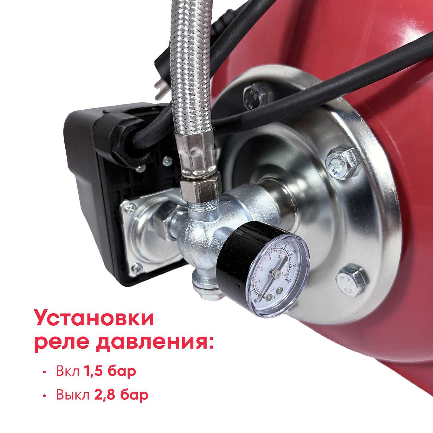 Несоответствие заявленным техническим параметрам Реальная мощность двигателя существенно ниже паспортных 800 Вт: под нагрузкой он работает как 450-ваттный, что подтверждается замерами энергопотребления на холостом ходу (240 Вт). Давление в гидроаккумуляторе из коробки составляет лишь 1.4 атм против оптимальных 1.5–1.8 атм, что усугубляет проблемы с запуском. Манометры часто нерабочие, а диапазон регулировки реле давления ограничен, вынуждая пользователей вмешиваться в настройки. Заявленная бесшумность также не соответствует действительности — многие сравнивают гул с вертолётным.