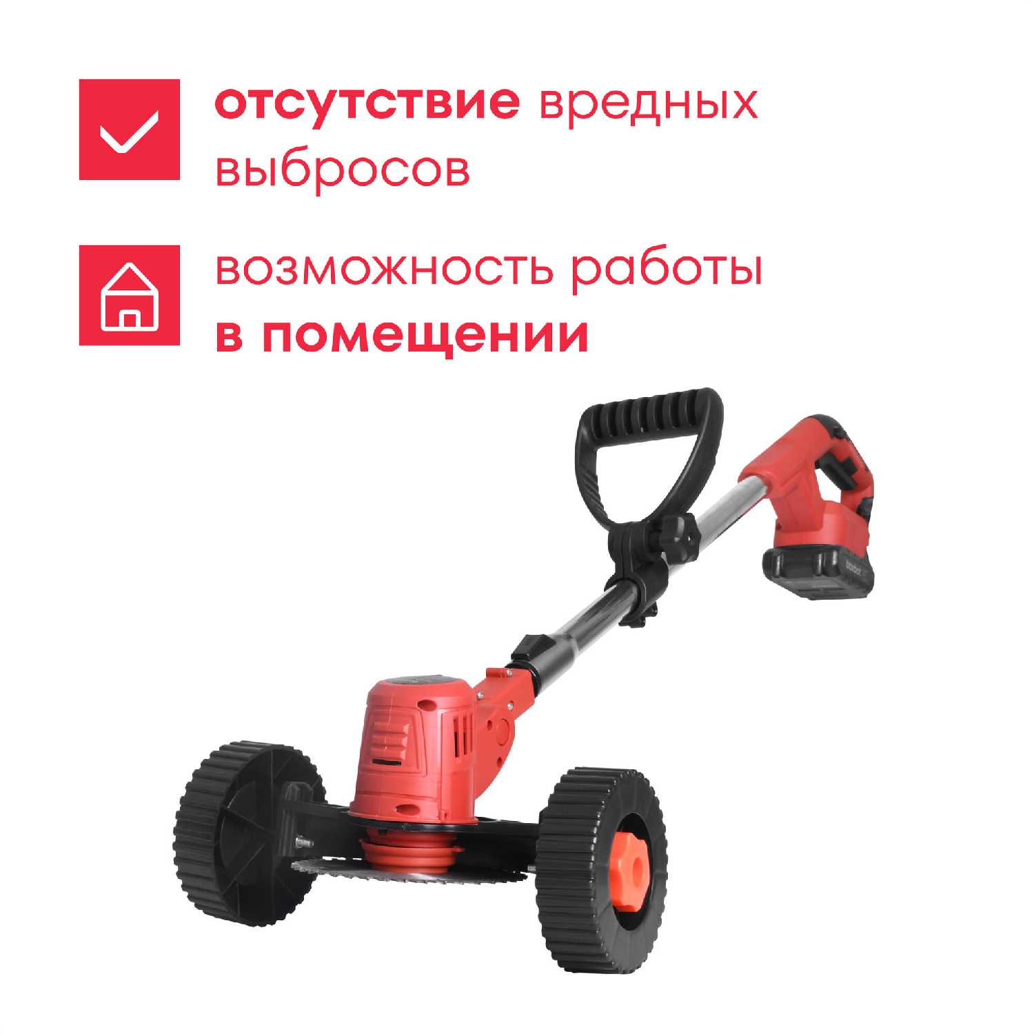 - + Очень лёгкая коса, распространенный тип аккумулятора и подходят от другой китайской техники, малошумная, колёса это просто находка!!!