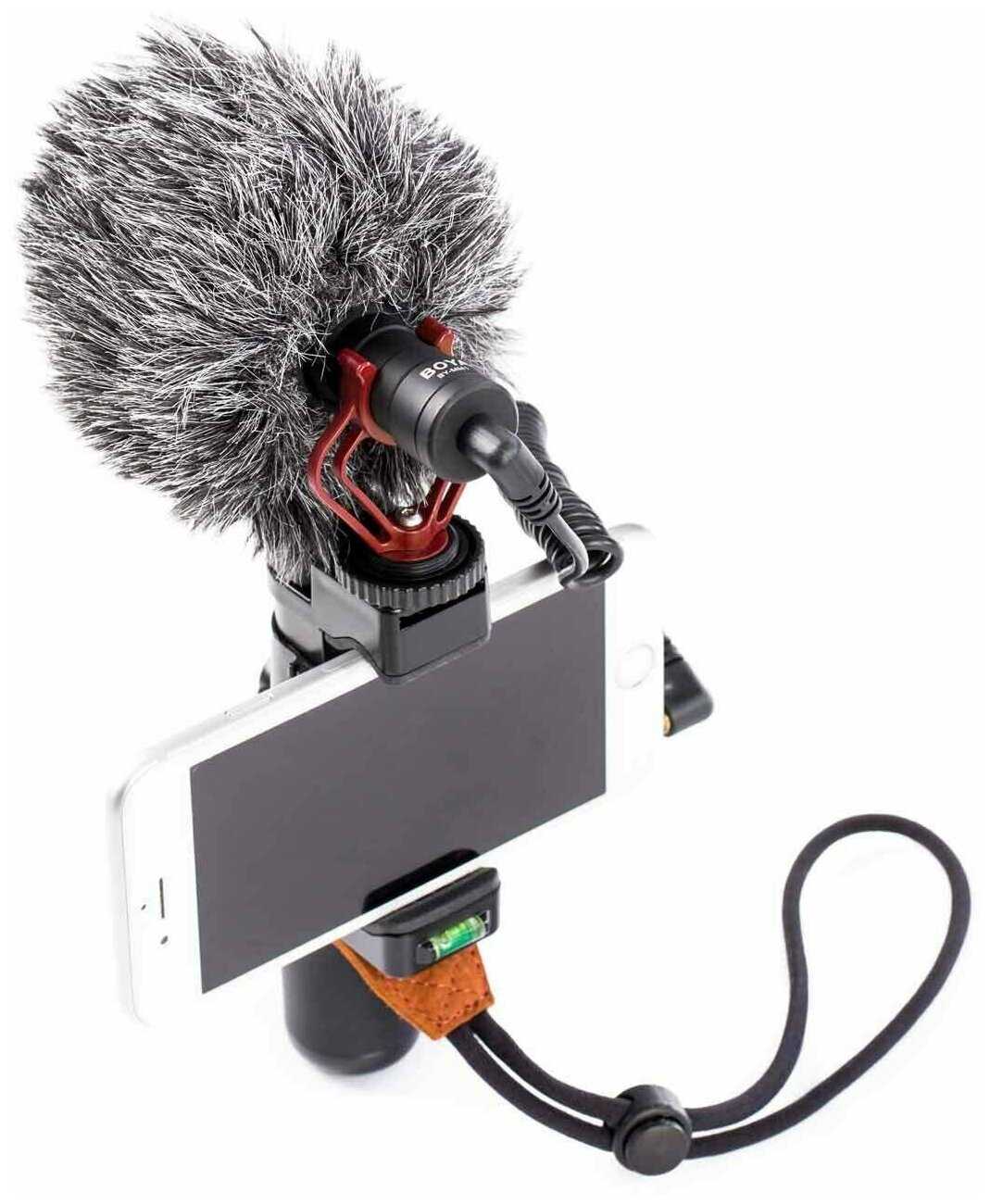 Для работы со смартфонами в комплекте предусмотрен специальный кабель TRRS (с тремя черными полосками на коннекторе). Подключение простое и не требует дополнительных настроек. Микрофон значительно улучшает качество звука для видеоблогинга прямо с телефона или для записей в диктофон. Кабель достаточно короткий, что идеально для съемки на телефон с рук, но может быть неудобно для некоторых сценариев. -
