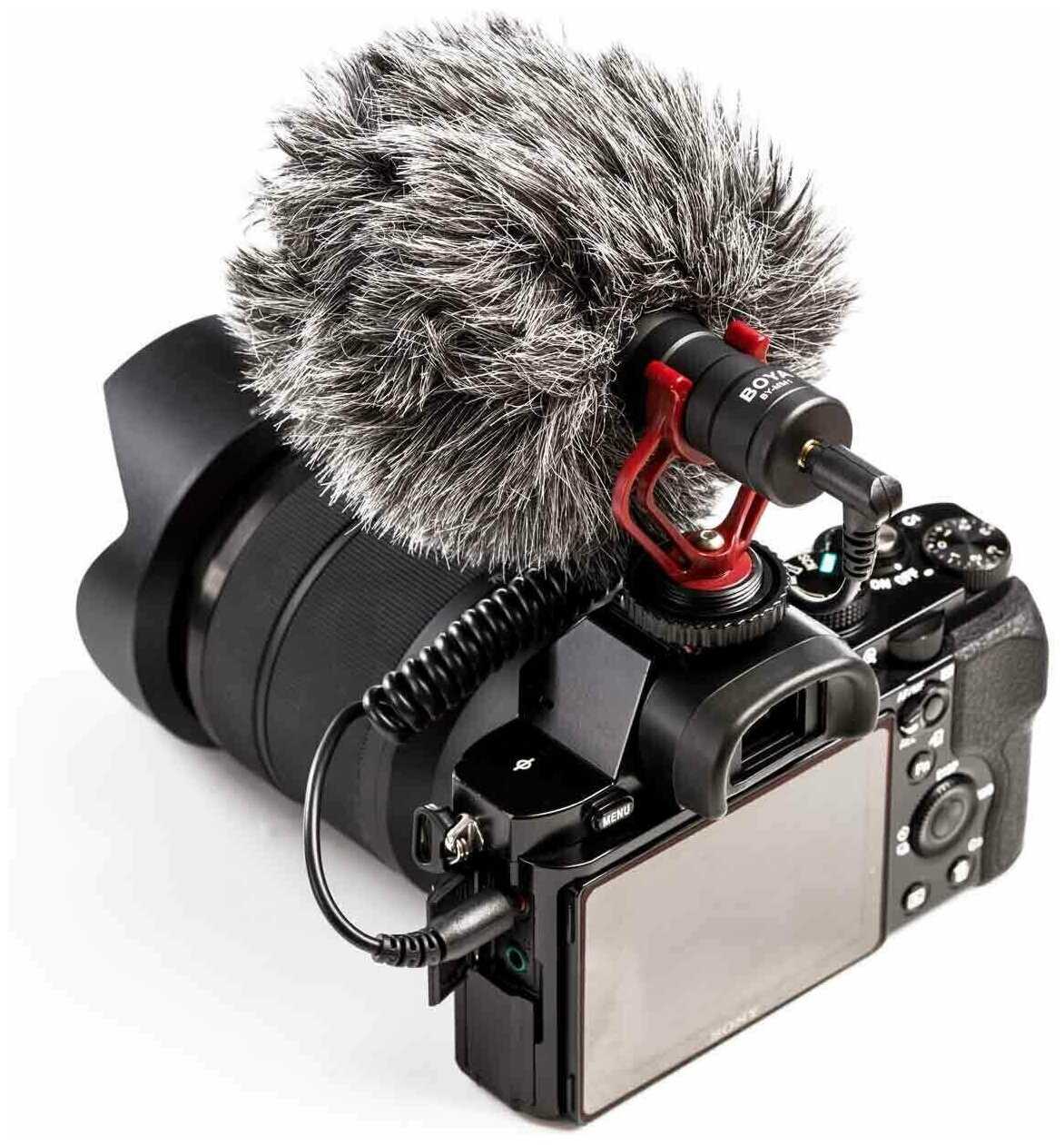 Хороший компактный и прочный микрофон. Пишет хорошо. Использую дома без ветрозащиты. Подсоединяю его к камере fdr-x3000, прикрепляю к корпусу изолентой, но как раз размером с эту камеру. И не нужно никаких дополнительных приспособлений. К сожалению микрофон не работает с камерой Cannon. Наверное она не подаёт дополнительного питания на микрофон., камере уже лет 6.