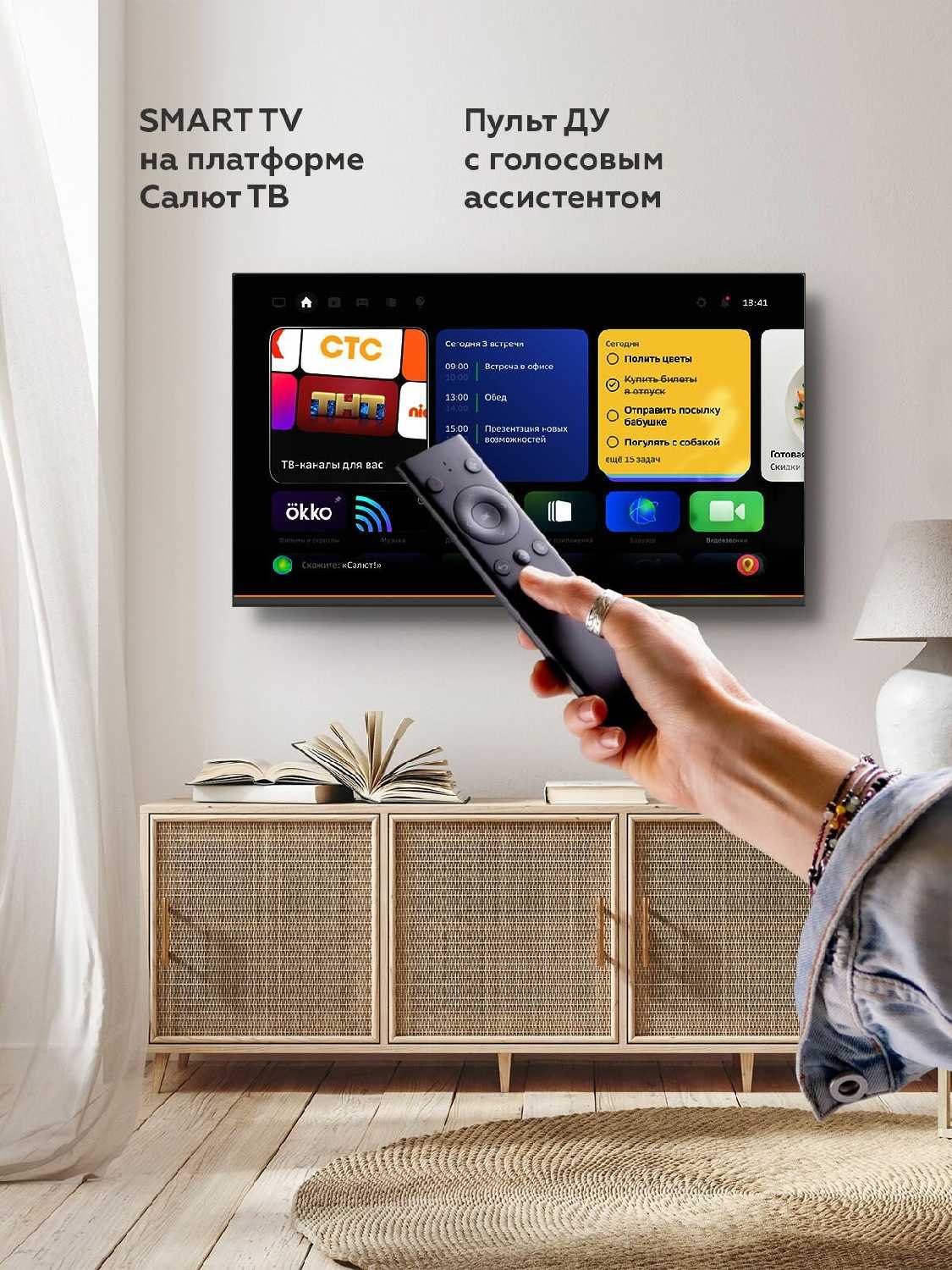 Приобрели телевизор для спальни. Картинка яркая и четкая. Удобный интерфейс Smart TV позволяет легко находить любимые приложения. Единственный минус - звук мог бы быть чуть лучше, но это не критично. В целом, мы очень довольны.