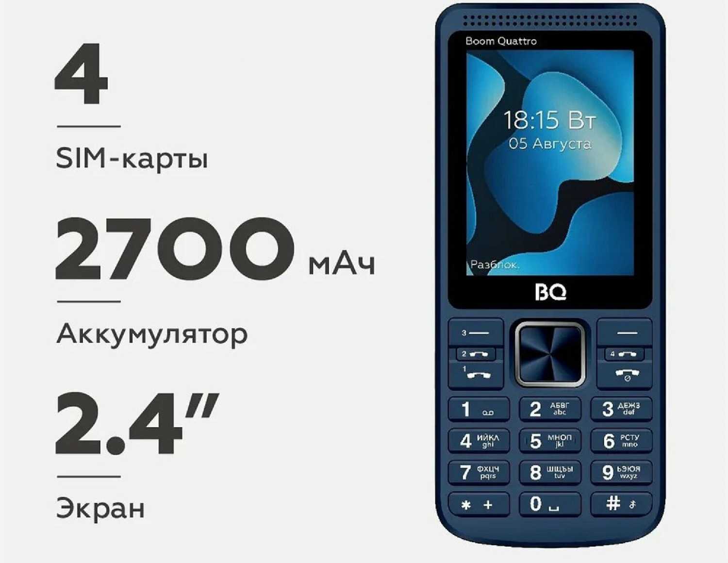 - + Четыре СИМ-КАРТЫ, большой аккумулятор (до 5 дней), радио без антенны