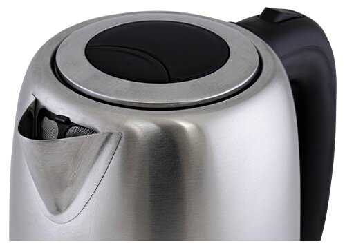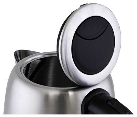 Неплохой чайник для семьи из 4-5 человек. Крышка открывается кнопочкой, ручка пластиковая - обжечься практически нереально. Греет достаточно быстро. Есть индикатор уровня воды. Очень порадовало наличие ситечки в носике, накипь как правило появляется в самый неподходящий момент, а фильтр не дает ей попасть в чашку.