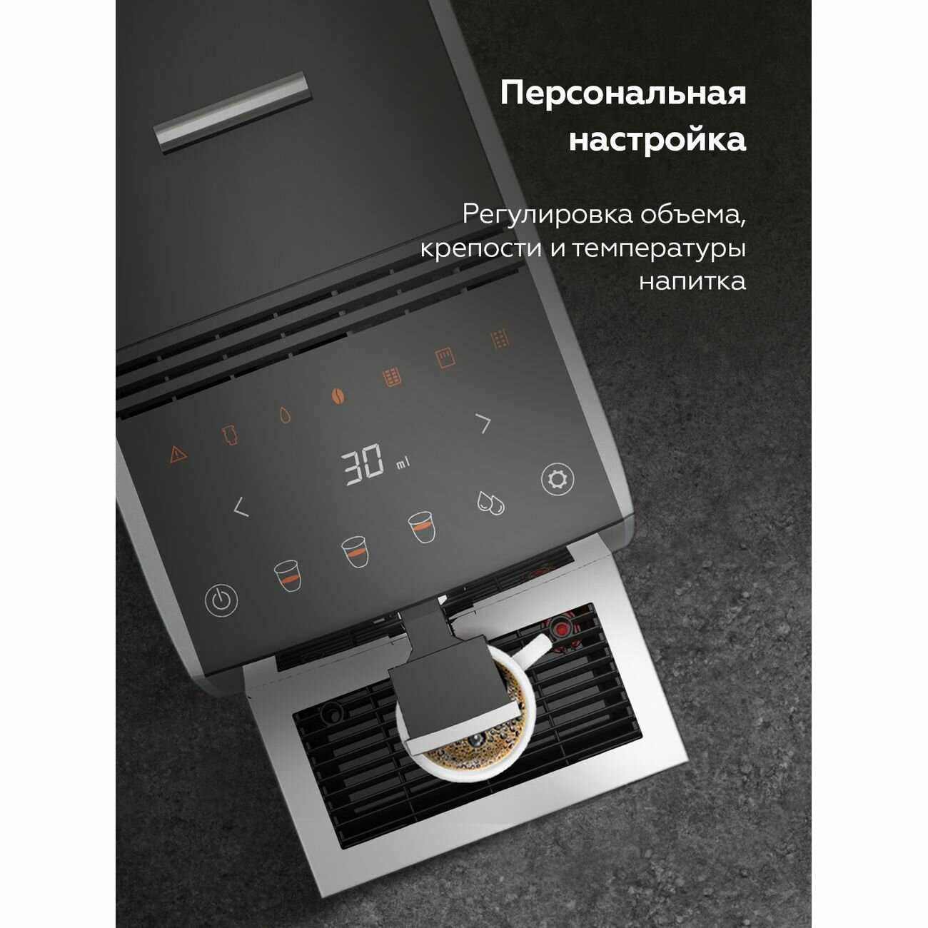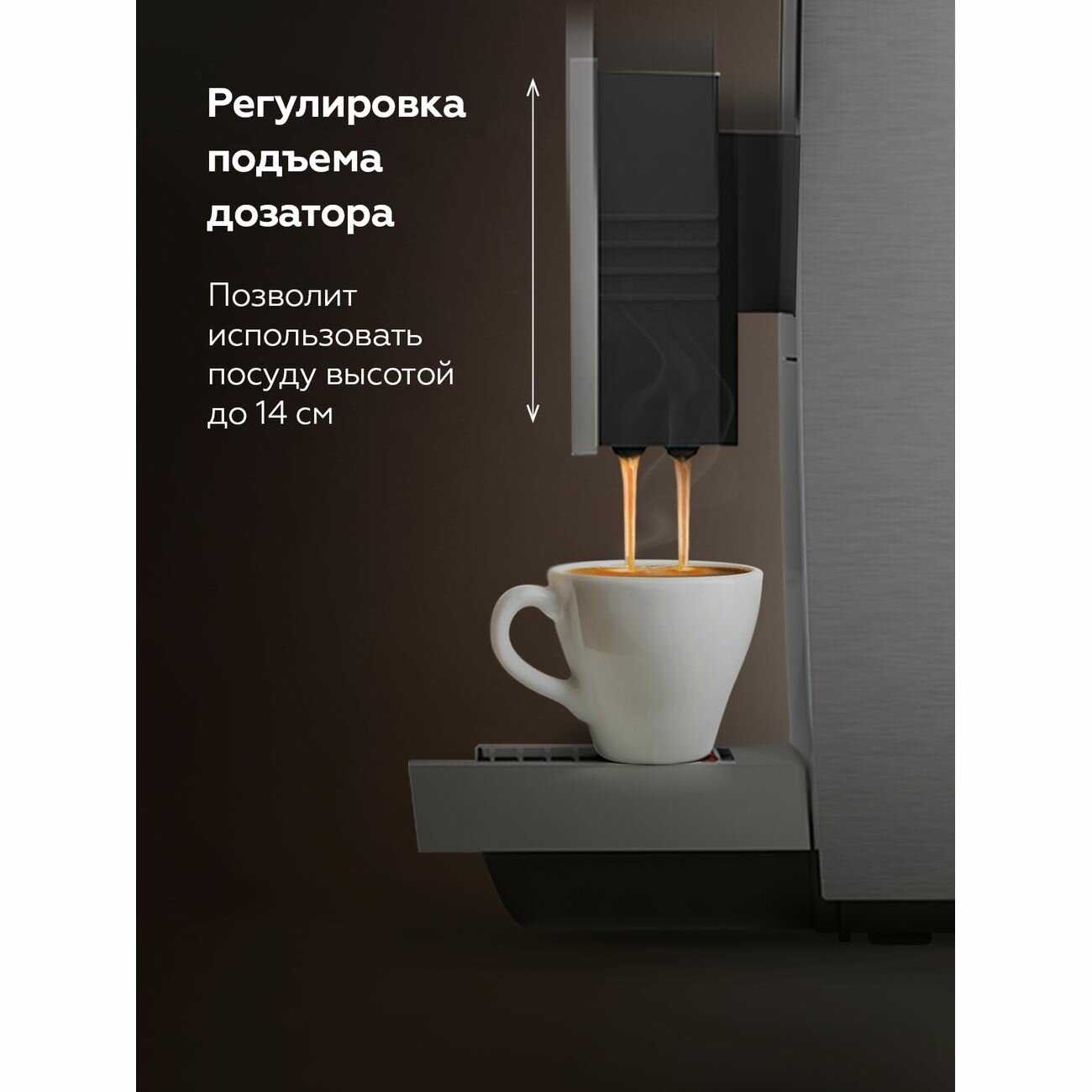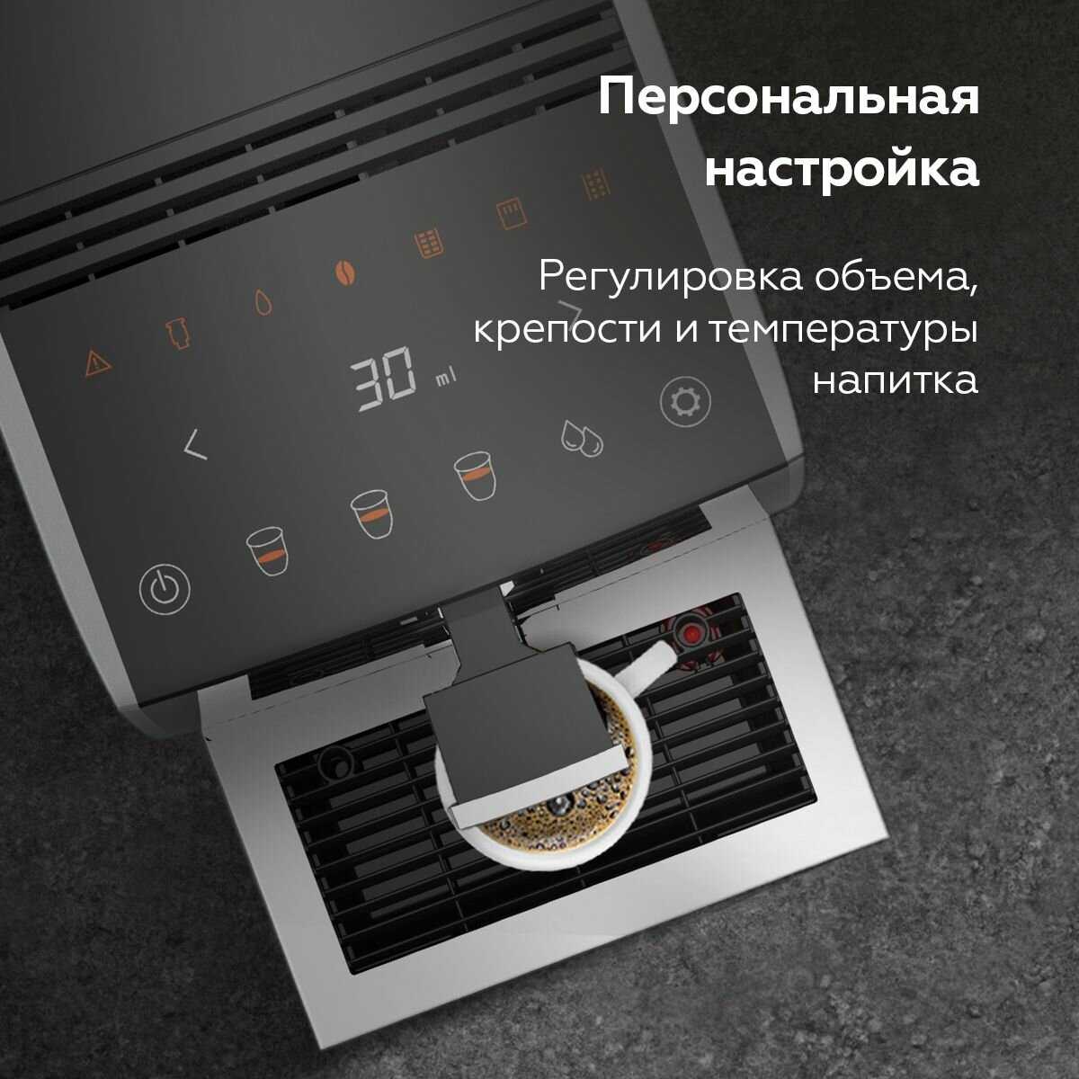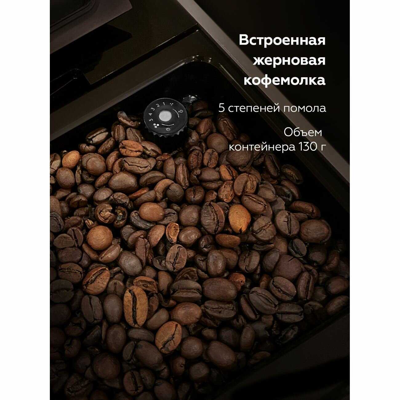 - + Отличная функциональность - устройство оснащено встроенной кофемолкой с 15 степенями помола, капучинатором для приготовления капучино и латте, а также функциями автоотключения и автоматической очистки.