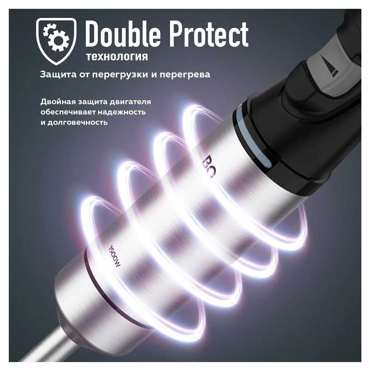- Мощный мотор (1500 Вт) с эффективным охлаждением: