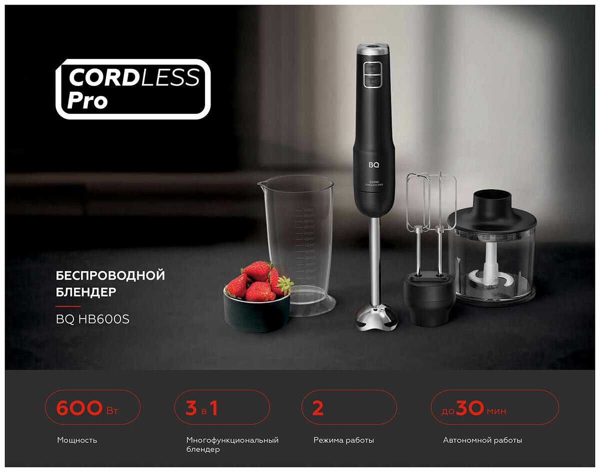 - + Беспроводной, хорошо взбивает и измельчает.