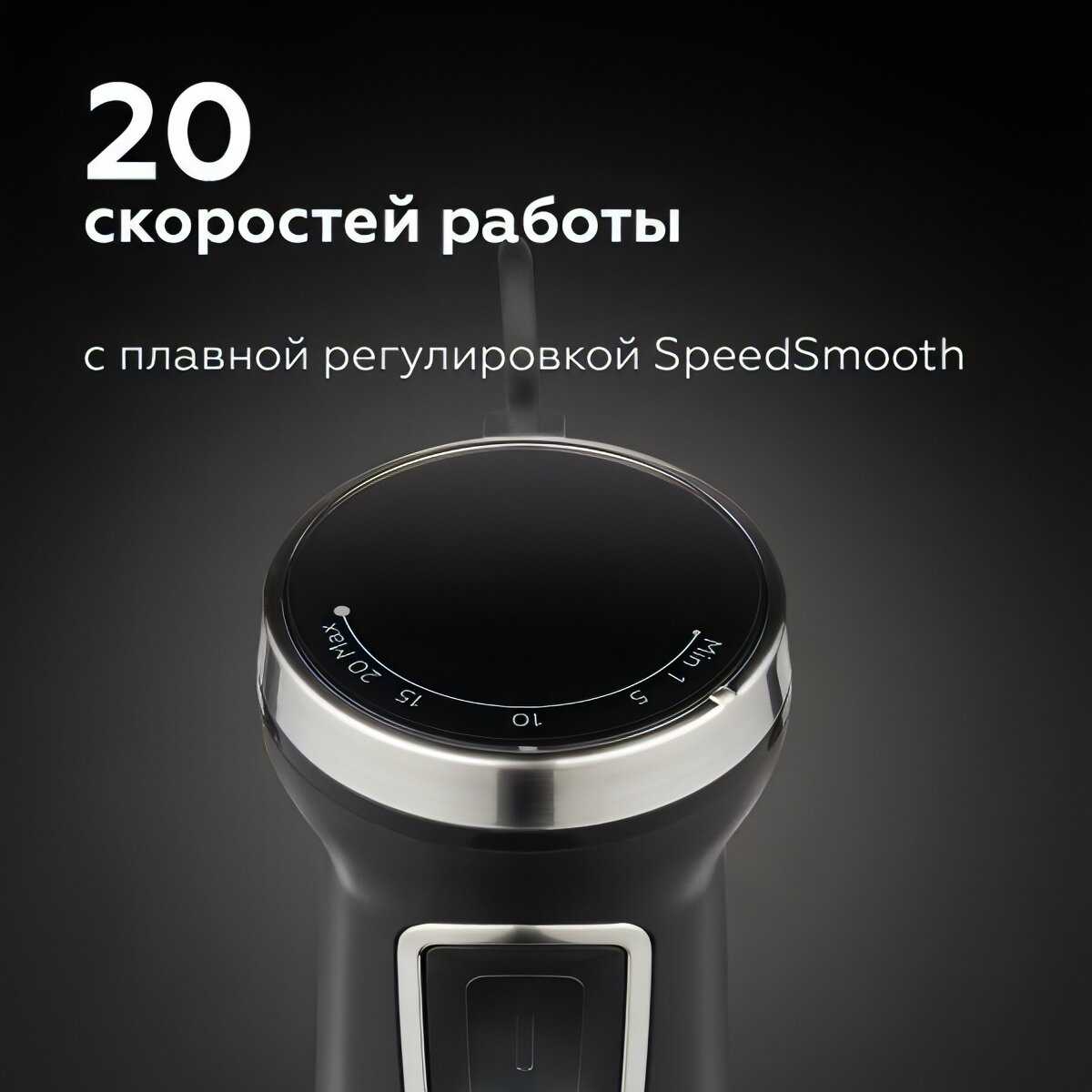 Это уже целый кухонный комбайн! Разные насадки, 20! Скоростей, турбо-режим. Есть