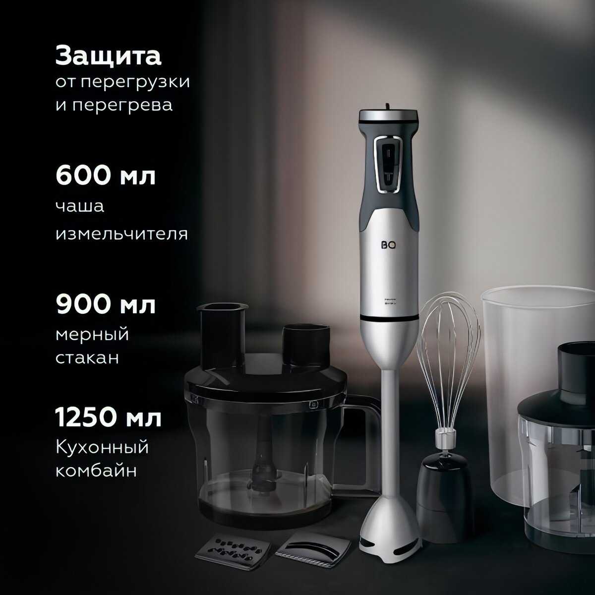 большая и малая чаши, мерный стакан, венчик. Он может всё! Измельчить, порезать,