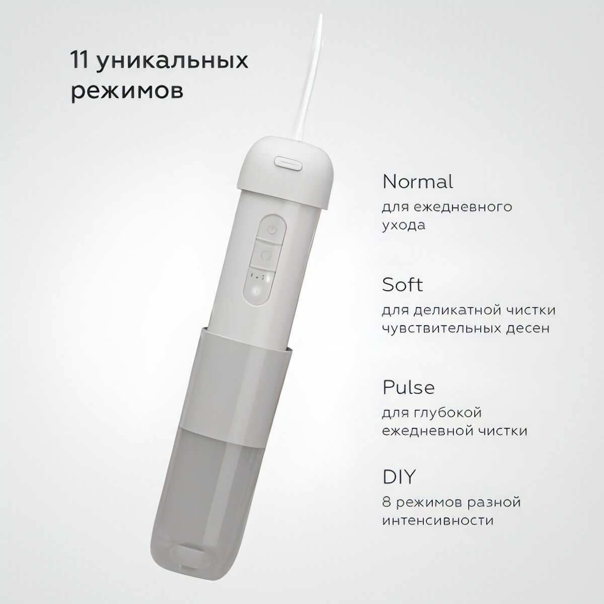 Ирригатор отличный, чистит замечательно, 11 режимов работы, заряда хватает надолго, а также в комплекте 2 насадки. Удобно брать с собой в путешествия.