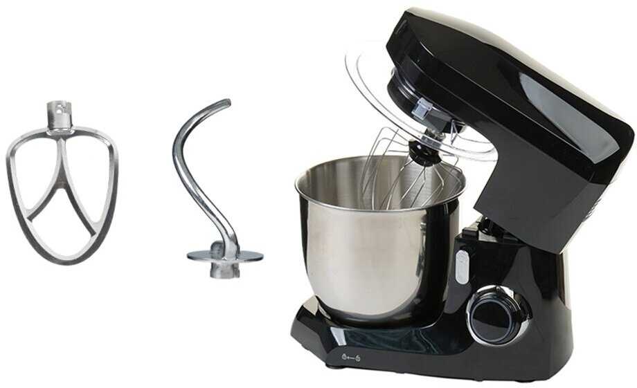 Мощность 1600 Вт позволяет замешивать любое тесто средней плотности, включая бисквитное и творожное. Пользователи хвалят его за способность справляться с кремами, соусами и тестом для тортов без проблем. Насадки — венчики, лопатка и крюк — достают до дна чаши, обеспечивая равномерность. При сильной нагрузке возможен легкий запах пластика, но не критично. -