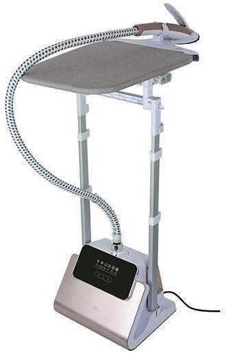 Понравилось, что у нагревателя широкая подошва и большой бак для воды. Выходит на рабочую температуру за пол-минуты. Пар мощный, разглаживает хорошо. Для горизонтального отпаривания на стойке есть доска. Термо-варежка уже в комплекте.