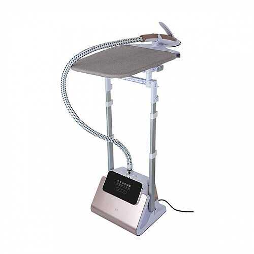 Понравилось, что у нагревателя широкая подошва и большой бак для воды. Выходит на рабочую температуру за пол-минуты. Пар мощный, разглаживает хорошо. Для горизонтального отпаривания на стойке есть доска. Термо-варежка уже в комплекте.