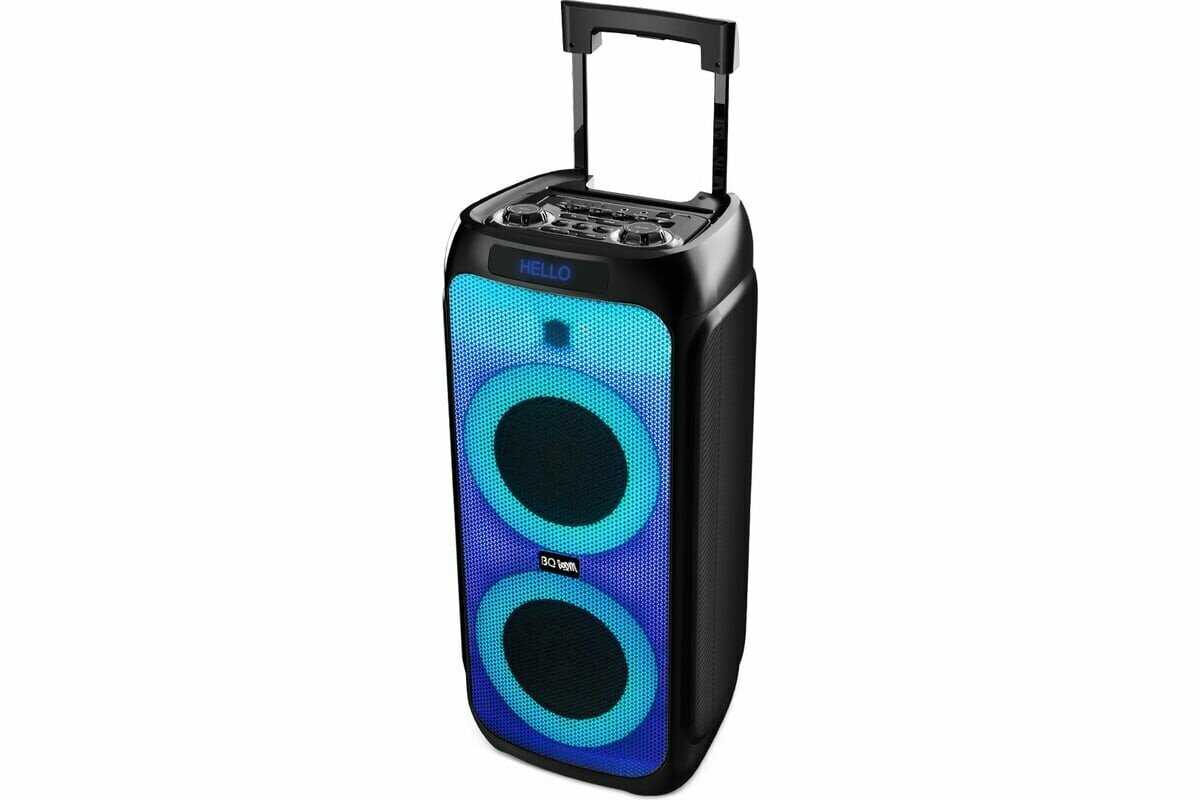 достаточно мощная. Мы поехали загород и взяли ее с собой. Вечером пели караоке. Удобно, что пультом можно и переключать песни, и звук регулировать…Все устали, напелись, а заряд аккумулятора еще остался :))
