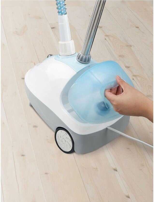 - - Шланг вроде длинный, но при отпаривании занавесок не достает до самого верха, приходится просить мужа поднимать сам отпариватель.