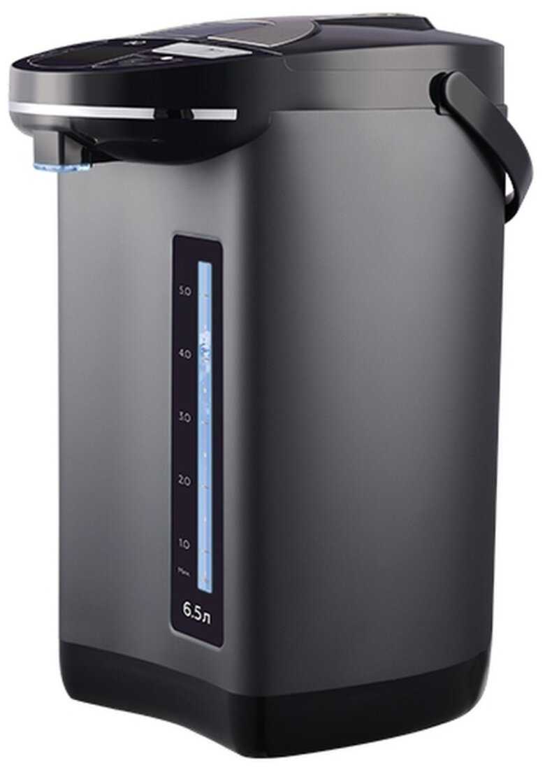 - Большой объём (6.5 л) и поддержание температуры в пяти режимах (45°C, 55°C, 65°C, 85°C, 95°C):