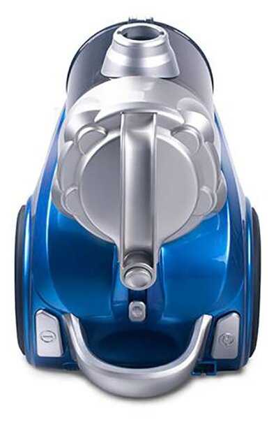 - Съёмный пылесборник (объём 1.5 л) очищается без контакта с мусором благодаря отстёгивающемуся механизму.