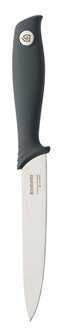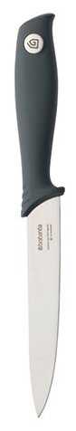 Классический нож для всего и сразу. Лезвие не очень широкое, поэтому лучше всего подойдет для нарезания овощей, фруктов, может быть иногда для небольших кусков мяса. Мне нравится удобная рукоятка с изгибом под пальцы, за это, конечно, ставлю плюс производителю. Рука не скользит, если мокрая. Не доставляет проблем с мытьем, однако хотелось бы зазубрину для открывания бутылок. Но это так, мелочи.